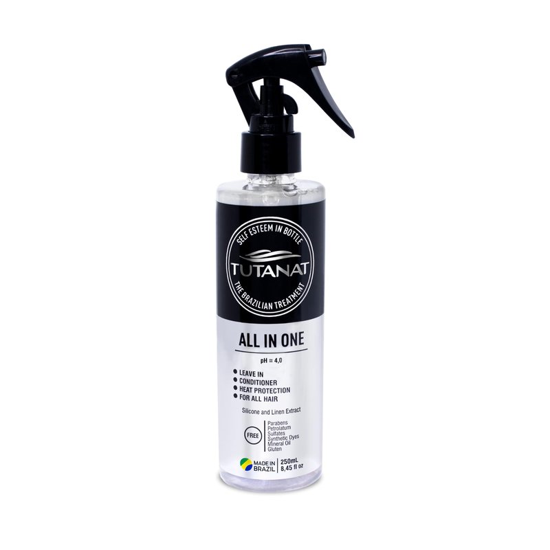 Since 1986, enrolled in the highly miscigenated brazilian market and focusing on developing solutions to embrace all hair types, Tutanat's main mission and purpose is to celebrate Hair Diversity and provide the best care to every hair strand. Get salon-quality hair at home with Tutanat All In One! This all-purpose product repairs, protects from heat and color, controls frizz, detangles, and prevents split ends. Develop amazing shine, silkiness, and volume. Featuring Silicone and Linen Extract, All in One gives your hair the life that it needs. How to Use: Apply to lengths and ends of damp hair (towel dry), after washing, conditioning and rinsing your hair. For All Hair Desde 1986, envuelta en el altamente miscigenado mercado brasileño y enfocada en desarrollar soluciones para abrazar todos los tipos de cabello, la misión principal y el propósito de Tutanat es celebrar la Diversidad Capilar y proporcionar el mejor cuidado a cada hebra de cabello. Consigue un cabello de calidad de salón en casa con Tutanat All In One! Este producto multifuncional repara, protege del calor y la coloración, controla el frizz, desenreda y previene las puntas abiertas. Desarrolla un brillo increíble, sedosidad y volumen. Con silicona y extracto de lino, All In One le da a tu cabello la vida que necesita. Aplicar sobre largos y puntas del cabello húmedo (secar con toalla), después de lavar, acondicionar y enjuagar el cabello. Para Todo Tipo de Cabello.