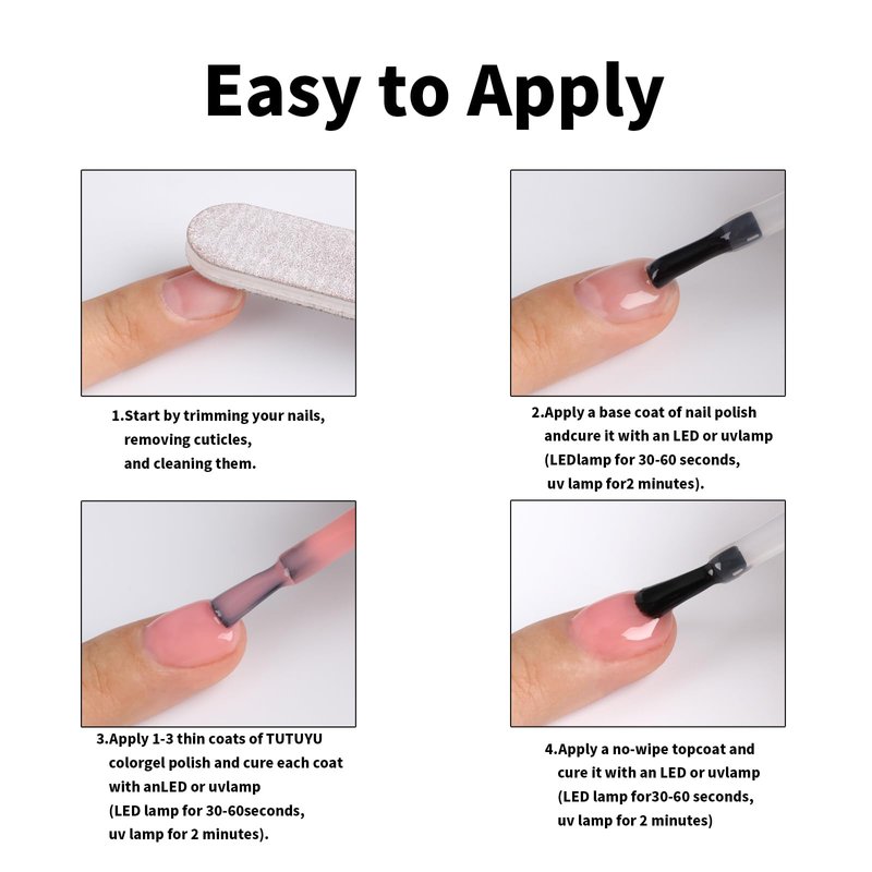 - Speed Curing with LED Nail Lamp: The gel nail polish kit need to be cured under LED light. Base and Top coat required. Average for LED light 60-120 secs.