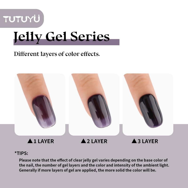 - Jelly Gel Nail Polish:Sheer and Translucent purple black gel polish,Long lasting for 28+ days with perfect shine.