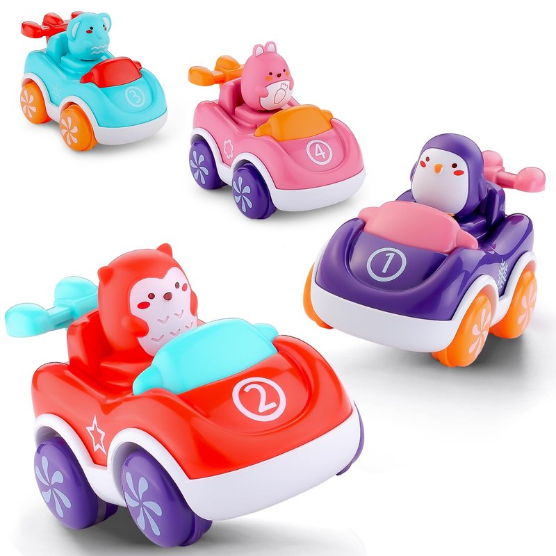 - ✨【Animal Cartoon Toddlers Toy】:4 Cute toy cars (elephant, rabbit, penguin, hamster), bright colors to attract the interest toddler, cute and sophisticated cartoon design to attract young children to play for a long time.