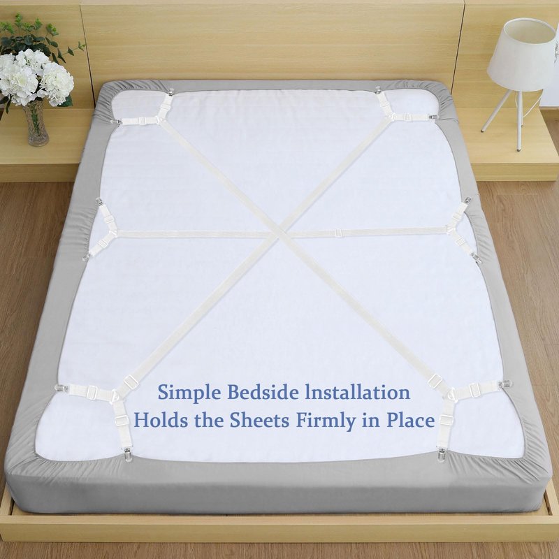 - ✅【Wide Compatibility】Adjustable Crisscross Sheet Clips can be used adjustable mattress base. Bed sheet fasteners perfect for use as flat and fitted sheet, work for all sheet sizes from Twin Full and Queen to California King; The sheet clips for bedding fit all kinds of sheets, throw blankets, covers for.
