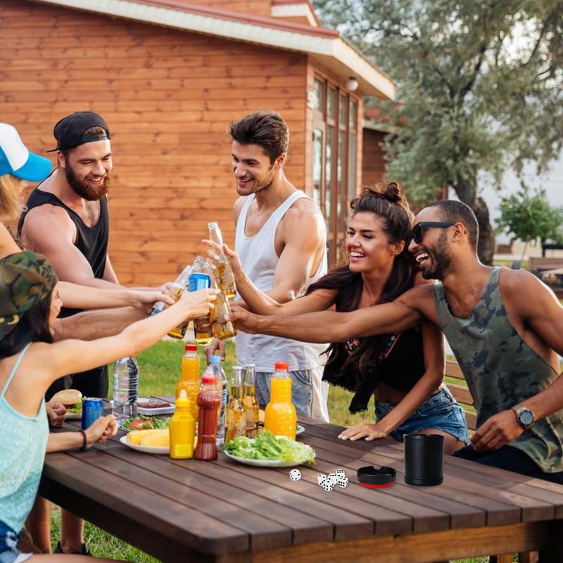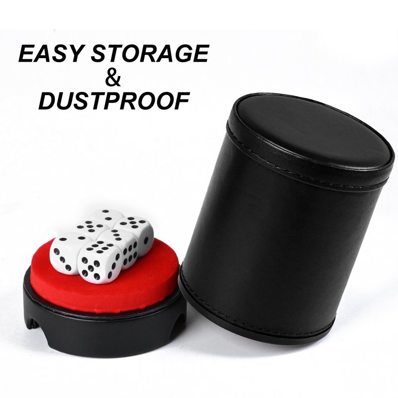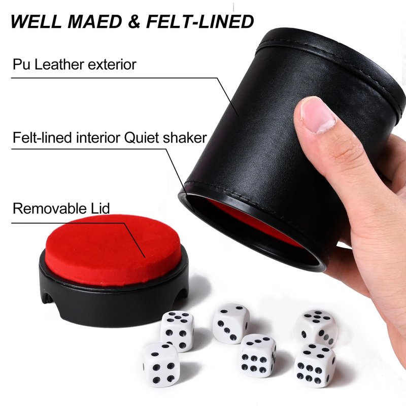 TUZAMA Dice Cup Leather Set with Lid, Felt-Lined PU Leather Quiet Shaker for Yahtzee Farkle Dice Board Games, Set of Six 16mm Dice Included