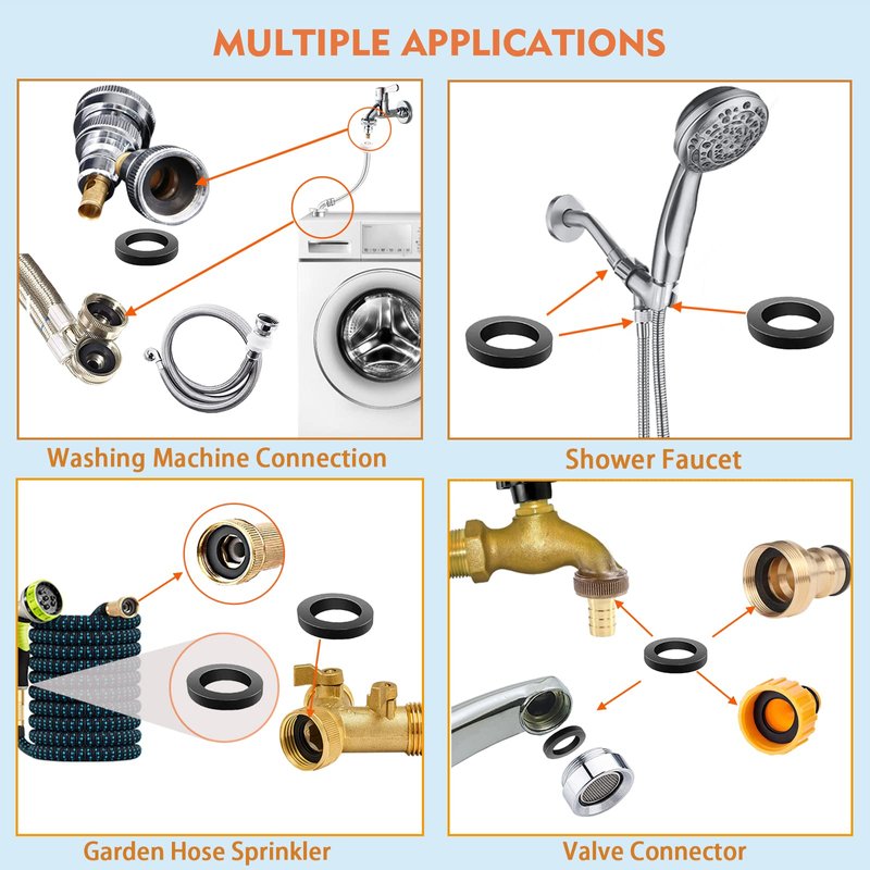 - {WASHERS APPLICATION}: Plumbing flat washers kit used for home kitchen/ bathroom plumbing faucets shower hand spray hose splitter,shower hose wand, various RV faucet pipe,water supply line, outdoor spigot elbows adapter,outside faucet repair kit replacement.