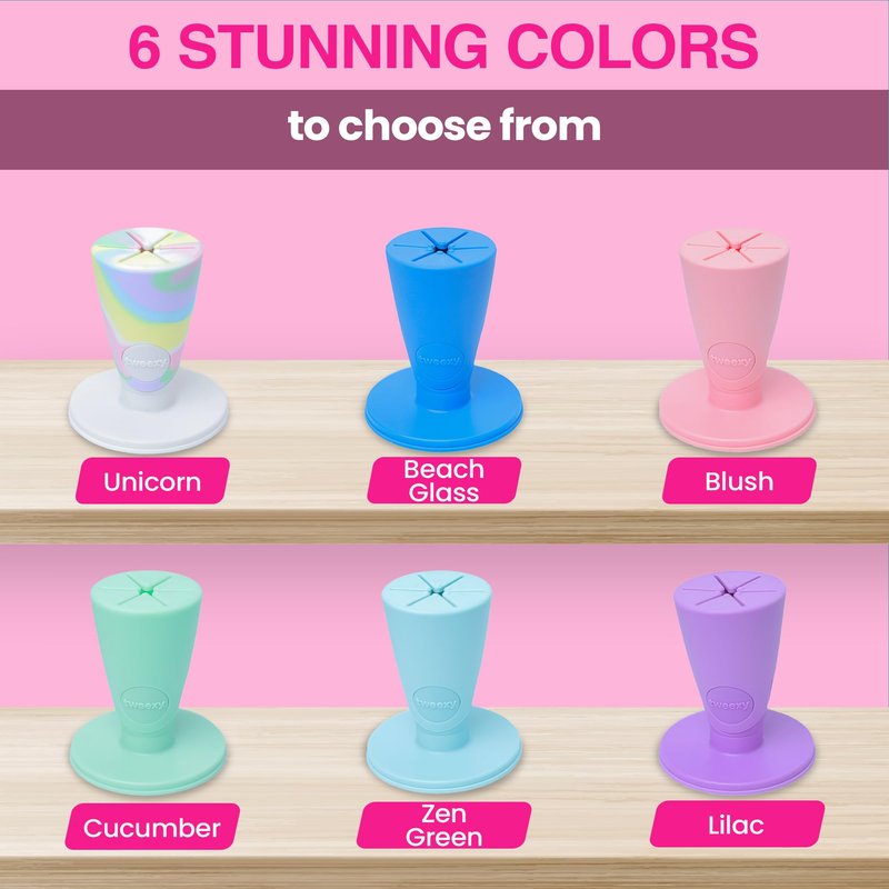 Find more time to spare in your nail-care routine with the Tweexy Hinge nail polish bottle holder. Grasping any smooth and flat surface, even vertically, you can set up a nail studio just about anywhere. Smartgrip Technology creates an air-pressured seal that nails down the Hinge for less mess and no clean up. To release the air-lock, lift straight upward and the low-pressure will release immediately. The silicone hood fits all shapes and sizes of nail polish bottles, and holds them tight for wiping excess polish. Become more efficient and more skilled at polishing your nails with the Hinge nail polish holder,