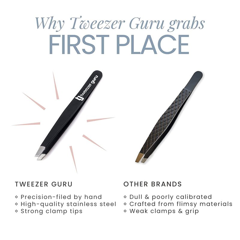 - STAINLESS STEEL - Built to last, our slanted eyebrow tweezers for women and men are made with premium-grade stainless steel and a matte finish for a flawless grip that never slips.