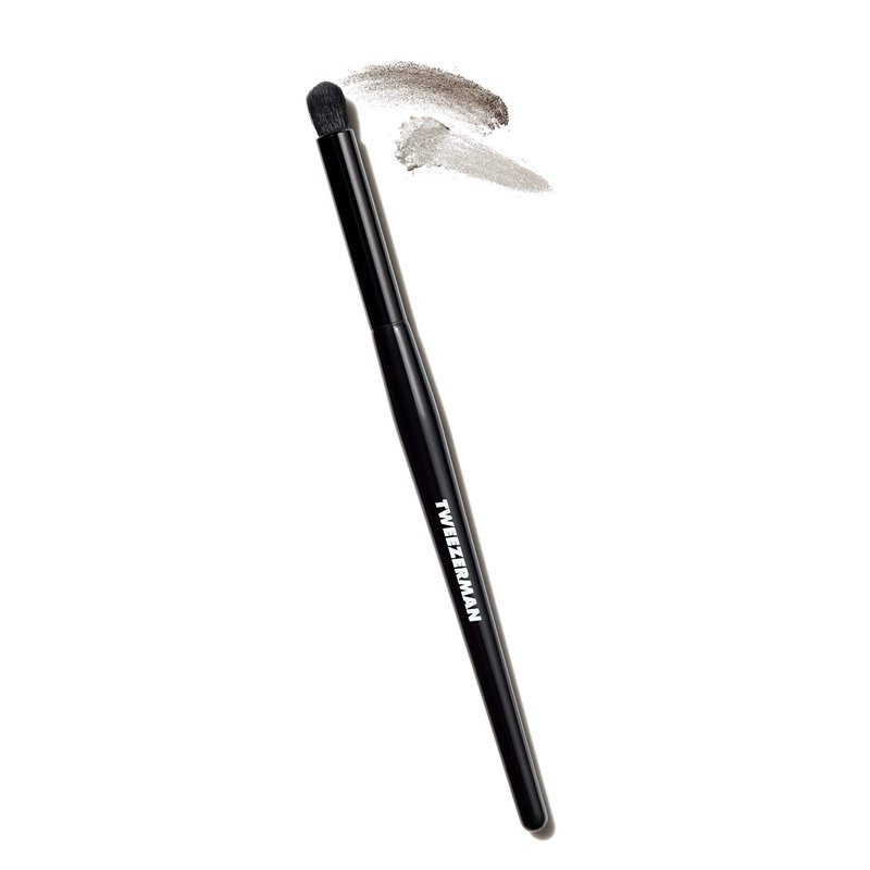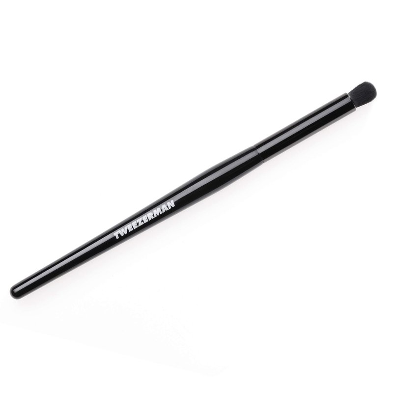 - Rounded brush with densely packed bristles, brushes brow hair into shape.