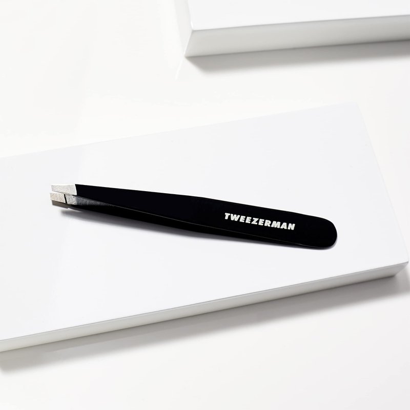 Tweezerman Stainless Steel Slant Tweezer - Eyebrow Tweezers for Women and Men (Black)