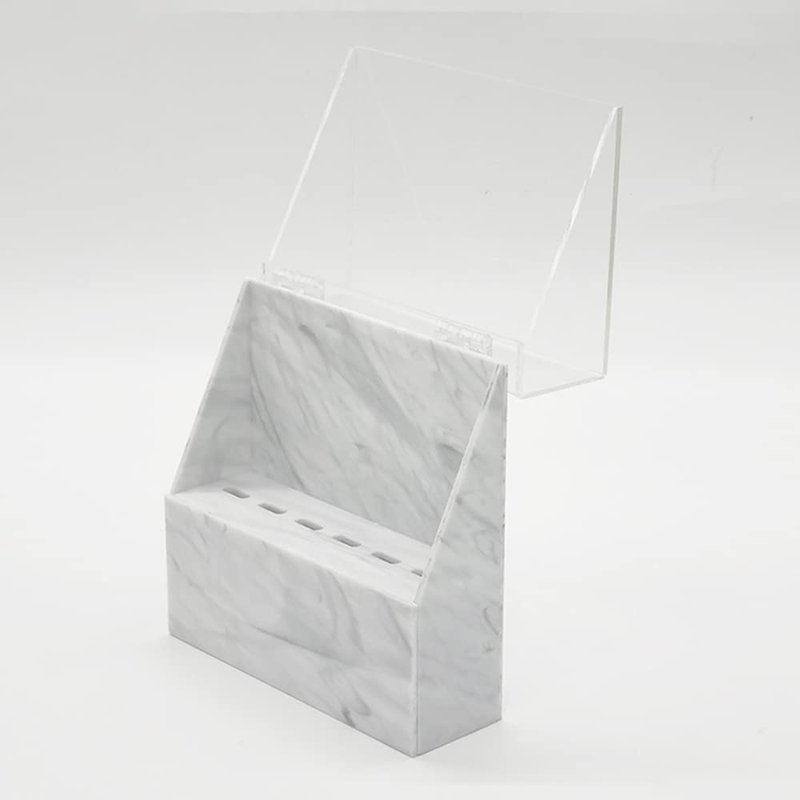 Tweezers Holder Shelf, Dust-proof Tweezer Stand, 8-Hole Acrylic Tweezers Display Stand, Storage Rack Eyelash Extension Tweezers Box with Dust Cover for Salon (Marble White-6 Hole)