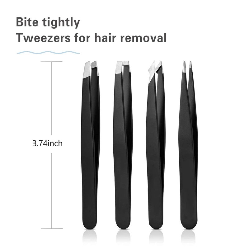 Tweezers Set, High Precision Stainless Steel Eyebrow Tweezers for Facial Hair, Inward Growing Hair and Splinter Remover Kit, Suitable for Women and Men, 4-Piece Set. (Black)