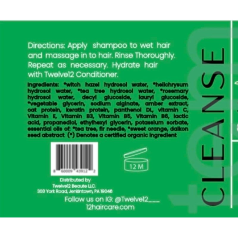 Our shampoo is a clarifying shampoo and preps the hair to be moisturized with Twelve12 conditioner. Our shampoo is PH BALANCED to soothe the scalp and minimize irritation. We provide plantbased properties to control dandruff