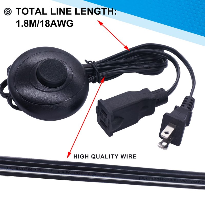 - Mechanical Life: 1,000,000 Times;Electrical Life: 300,000 Times;Switch Material : Plastic, Dust proof and flame retardant.Wire Material:PVC Plastic,Copper Core