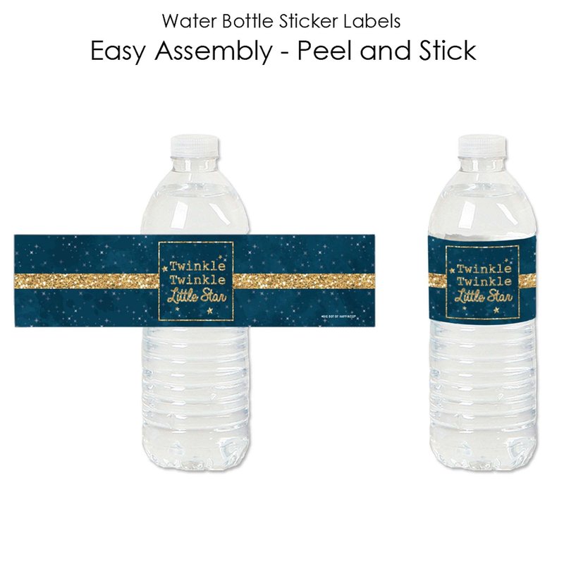 - Twinkle Twinkle Little Star Water Bottle Sticker Labels INCLUDES 20 DIY water bottle labels. Twinkle Twinkle Little Star DIY party supplies are perfect for quickly dressing up any beverage bottle in your party theme.