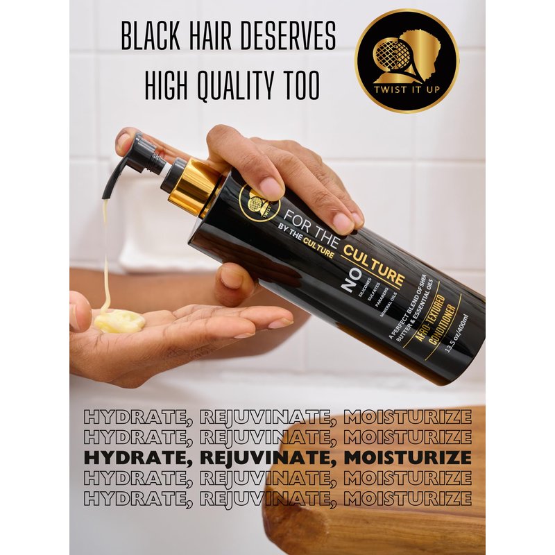 The New Gold Standard for Afro-Textured Hair. Formulated with over 20 essential ingredients, unlock the secret to softer more manageable hair with our high quality sulfate-free conditioner. While most conditioners are made up of 80% water, our formula contains less than 40%, allowing more ingredients to be dedicated to our hair. Enriched with the essential oils, Twist It Up Afro-Textured conditioner is perfect for reducing frizz and hydrating your hair. Designed specifically for any variation of Afro-textured hair, this conditioner detangles, hydrates, softens and leaves you with stunning healthy-looking hair. Elevate your haircare routine and unlock the extraordinary transformative power of a conditioner that has been curated just for the culture.