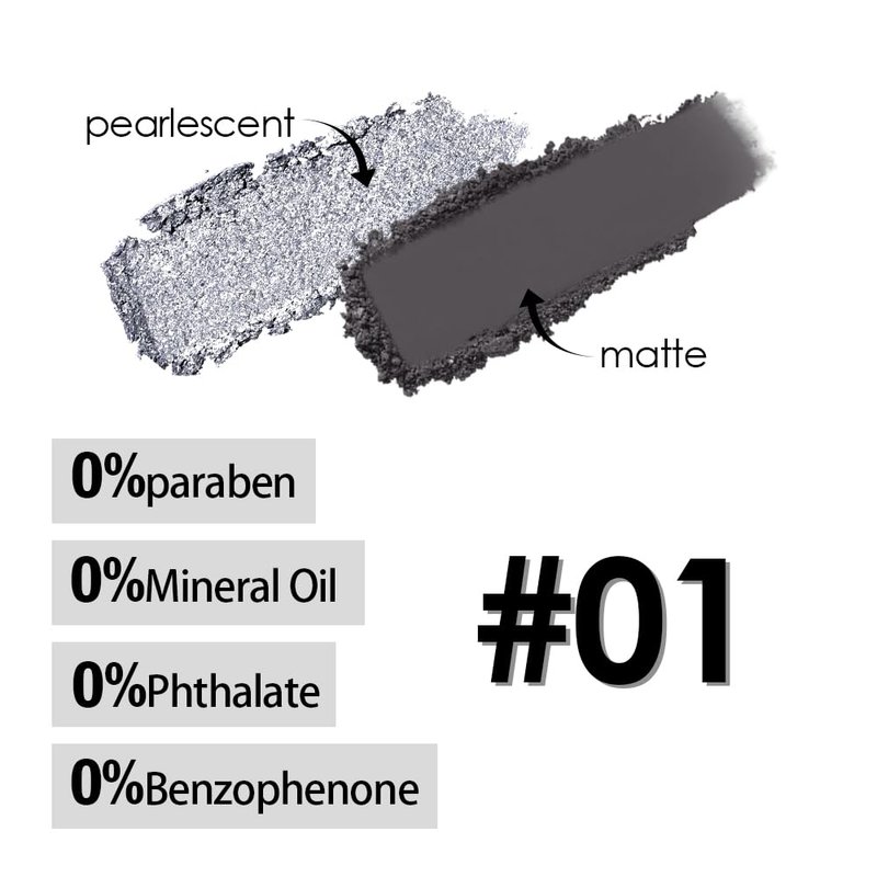 Two Color Matte Shimmer Eyeshadow, Gray Black Double Pigment Eye Shadow Powder, Long-Lasting Waterproof Makeup Palette,Blendable, Easy-To-Apply and Compact for Travel Vegan, Cruelty-free,0.14 Oz ,01#