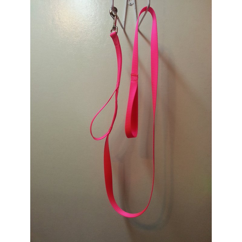 We sell these as a training leash. When training your dog there is plenty times you need a shorter leash for control. These leashes are great to allow your dog room to walk and other times to draw him in close for control. This leash is made around 6 feet long and out of Nylon webbing. Swivel snap to keep from tangling.