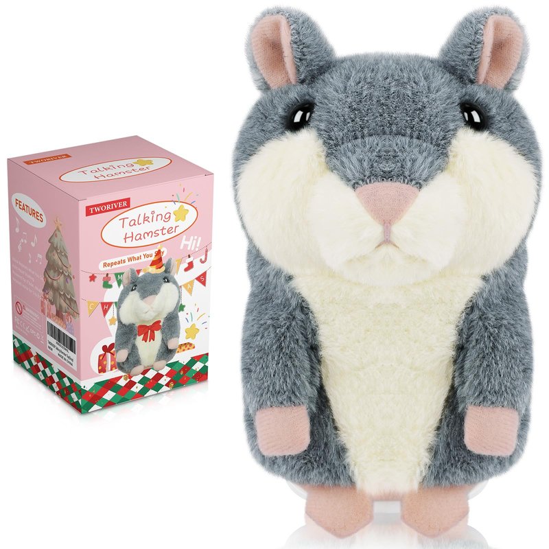 TWORIVER Toddler Toys Talking Hamster Repeats What You Say,Toys for 2 3 4 5 6 7 8 13 Year Old Girl Boy Birthday Gifts Ideas,Christmas Stocking Stuffers for Kids Adults Stuffed Animals Plush Toy Gray