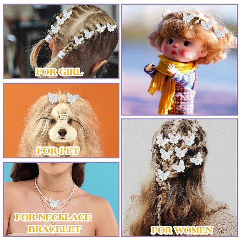 - 【Material】:These white tiny butterfly hair clips are made of high quality acrylic,and the hair clips are durable and light, the pretty glitter hair clips will made you be a beautiful fairy