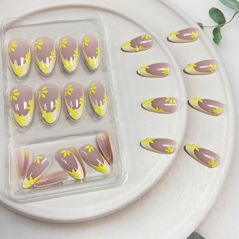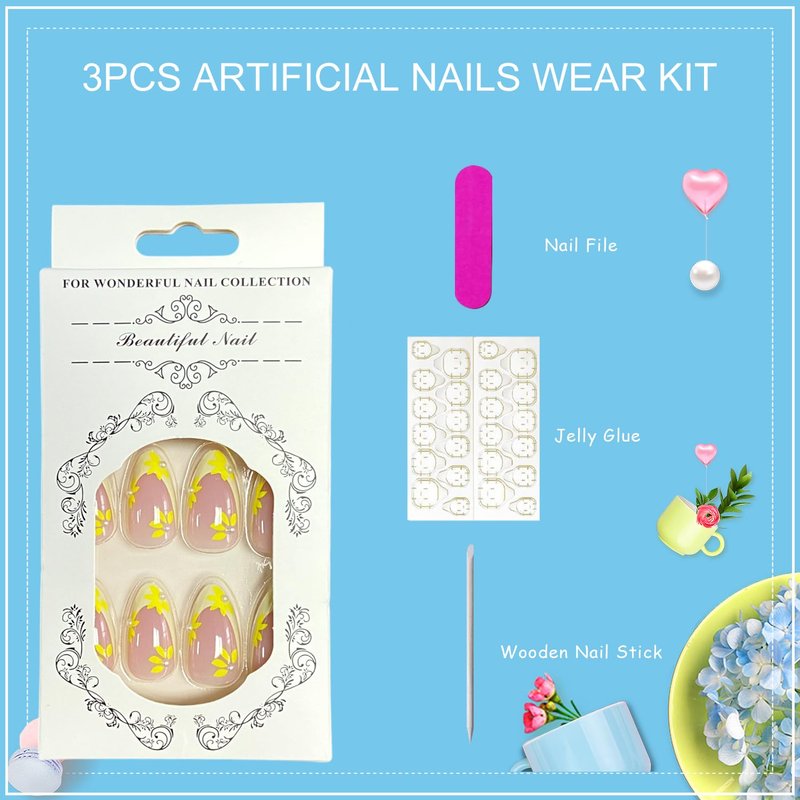 - 【Easy to Use】: Choose the suitable yellow flowers fake nails, polish the nail bed, paste the jelly glue we give you, press the fashion nail art in 30 seconds, and create the nail art that girls like,If the size is not suitable, it can be polished to the size of the nail cap with a friction tool.