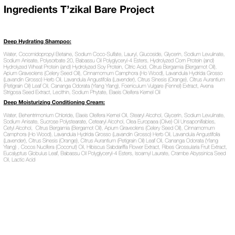 T'zikal Bare Project with Ojon Oil - Organic Shampoo and Conditioner Set - Deep Hydrating Conditioning for Natural Hair, Curly Hair and Color Treated Hair - SLS/SLE Sulfate Free Shampoo