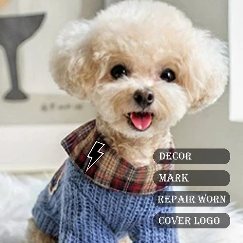 - This set patches all have same size. 3pcs same design and same size iron on patches for clothing means more backup programe when do ironing. Cool black patches are good to cover holes, logo, rips, dirts on black clothes or decorate hats, pants, clothes. Size of the lightning iron patches for vest is 2.5 x 0.8 inch;