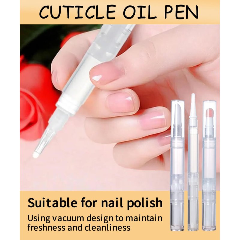 - EASY TO USE - This nail oil pen is easy to fill using a pipette. Simply inject the liquid into the cuticle oil pen, attach the white brush tip, and then turn the pen clockwise until the liquid emerges, allowing for even application where needed