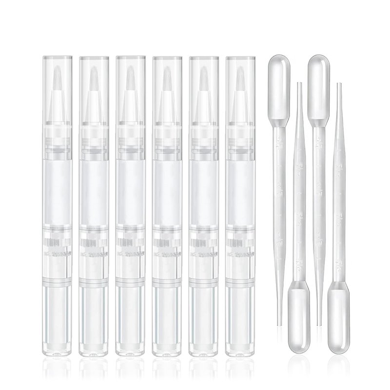 uadbau 6 Pcs 3ml Empty Cuticle Oil Pen with 4 Pcs Transfer Pipettes - Transparent Nail Oil Twist Pens with Brush Tip for Nail Oil, Eyelash Growth Liquid, Cosmetic Lip Gloss Container Applicators