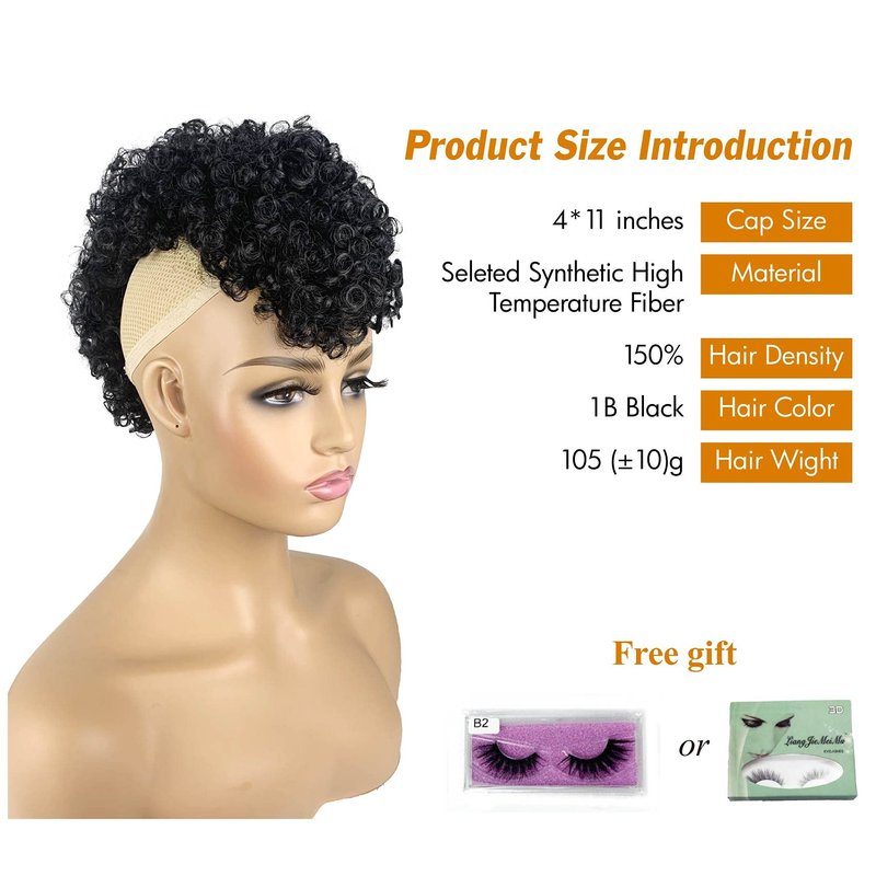 Package: 1 Afro kinky Curly Ponytail Hair Extensions with Bangs + 1 Pair of Eyelashes