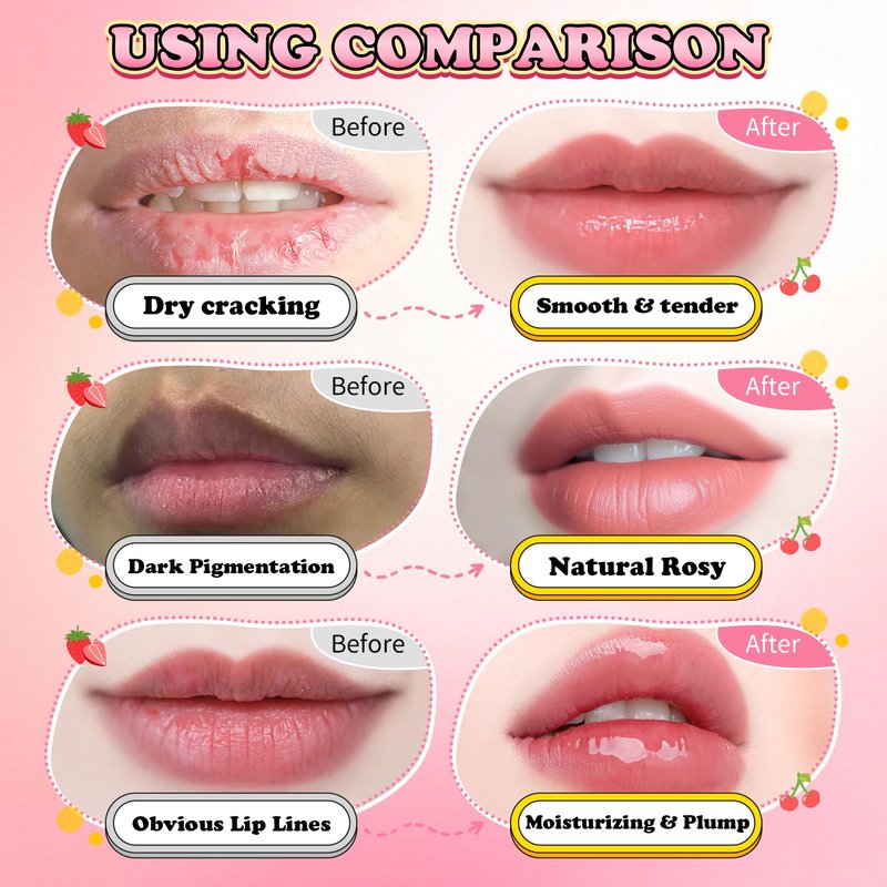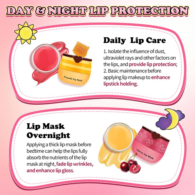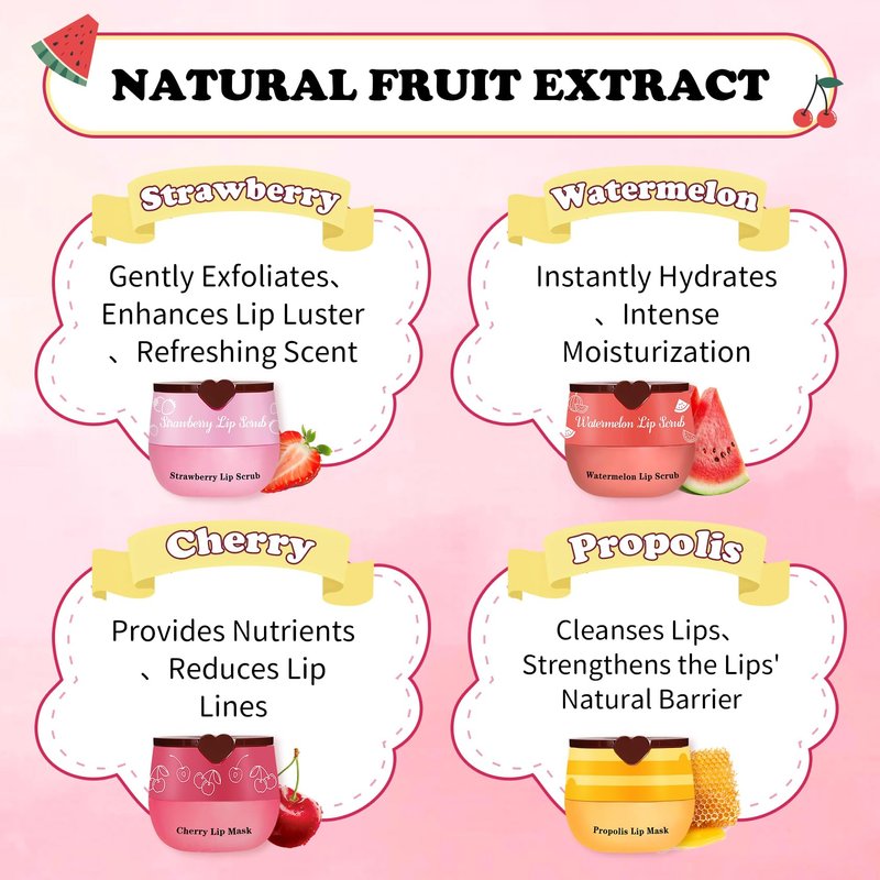 UAOE 4PCS Lip Scrub and Mask Set,Cherry and Honey Pot Lip Balm,Strawberry and Watermelon Lip Exfoliator Scrub and Moisturizer,Repair Lips Sleeping Mask,Reduce Fine Lines Lips Care Set