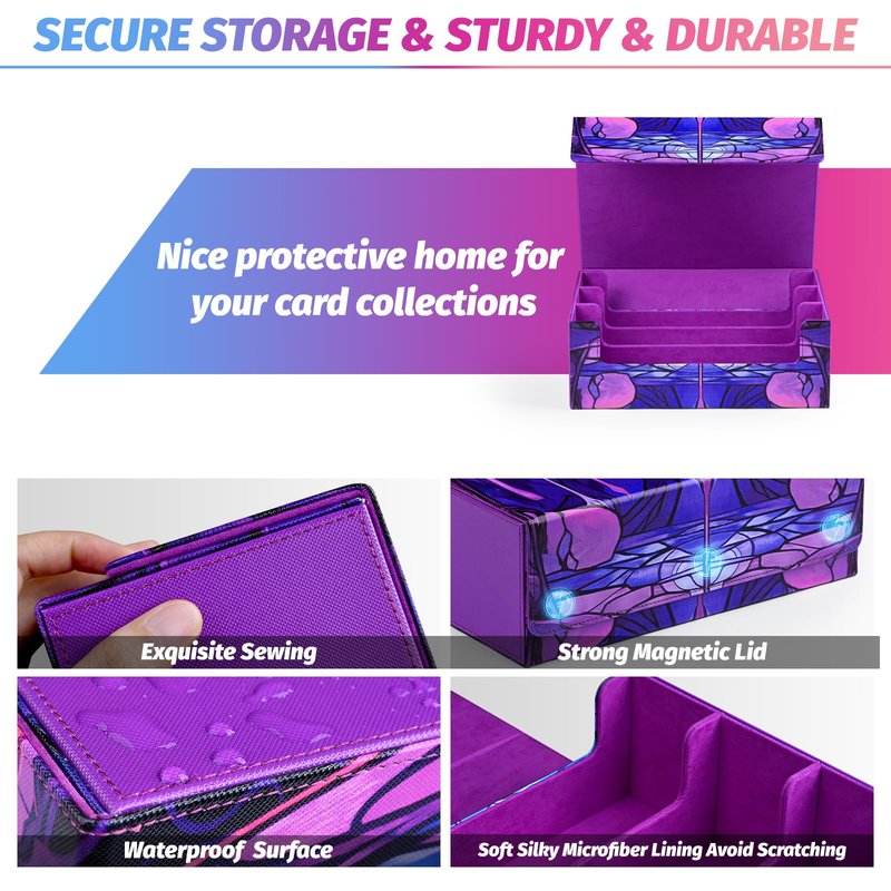 - Stylish Appearance with Magnetic Closure - The strong magnetic closure ensures that the card storage box won't open even when shaken hard, preventing cards from falling out. The exterior features a beautiful textured finish, providing not only excellent protection but also adding a touch of style to your cards