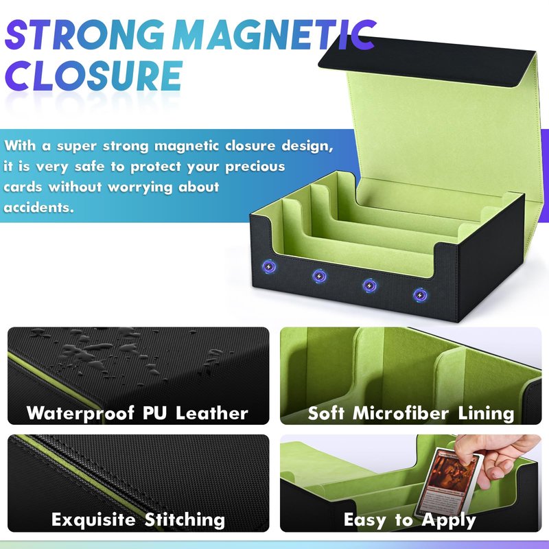 - ๐ ๐๐น๐๐ถ๐ฝ๐น๐ฒ ๐๐ฝ๐ฝ๐น๐ถ๐ฐ๐ฎ๐๐ถ๐ผ๐ป๐ - Our deck card boxes are well-built and versatile, and offer ample storage space for all of your gaming needs. Perfectly compatible with Magic The Gathering, dragon shield, YuGiOh!, Duel Masters, sports cards along with many more collectible card games. If you're in the market for a new storage solution for your cards and accessories, this box is definitely worth considering.