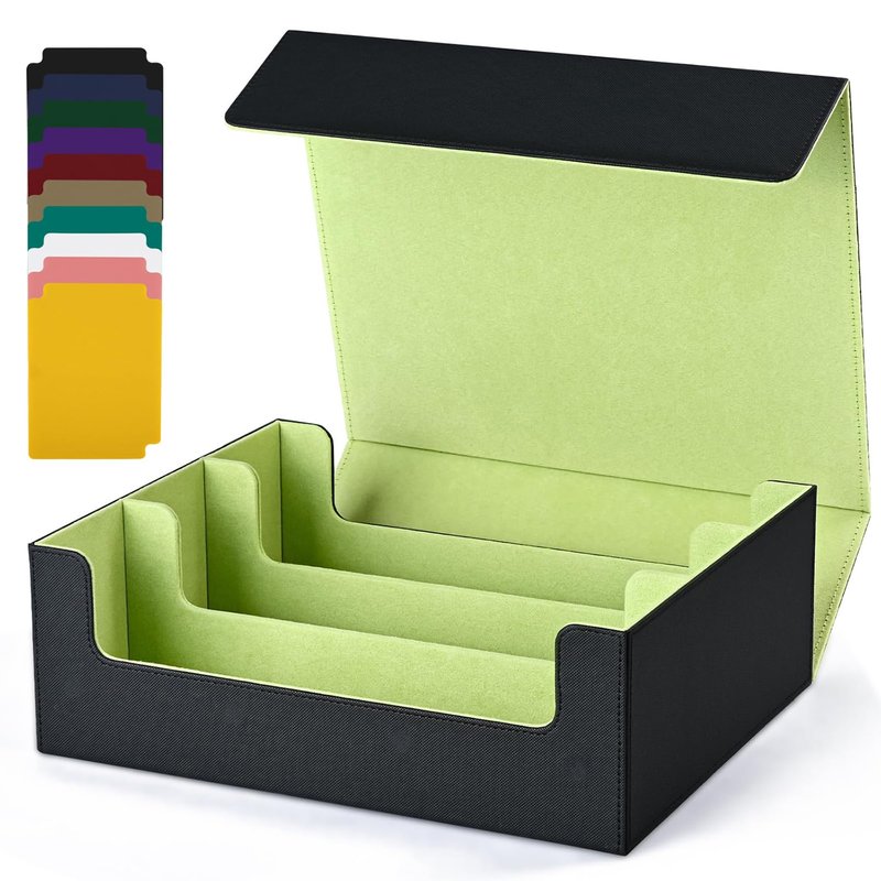 - ๐ฆ๐๐ฝ๐ฒ๐ฟ ๐๐ฎ๐ฟ๐ด๐ฒ ๐๐ฎ๐ฝ๐ฎ๐ฐ๐ถ๐๐ ๐๐ฎ๐ฟ๐ฑ ๐๐ผ๐ - This card storage box is large enough to store 2400+ sleeveless trading game cards easily. Also suitable for holding 1050+ double-sleeved cards or 1800+ single-sleeved cards, but not with top loaders sleeves and magnetic card holders. SURPRISE GIFT!!! Comes with 10 card dividers .