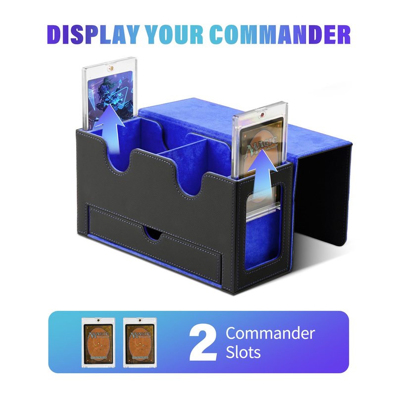 - The Ultimate Commander Solution: the commander deck box is specially tailored for Commander EDH players and custom-made for your commander deck. You can showcase your commander through the external display window. You can also hide your commander and surprise your enemies
