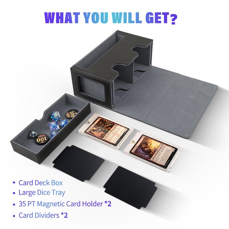 Package includes: 1 x card deck box, 2 x card dividers, 2 x magnetic card holder