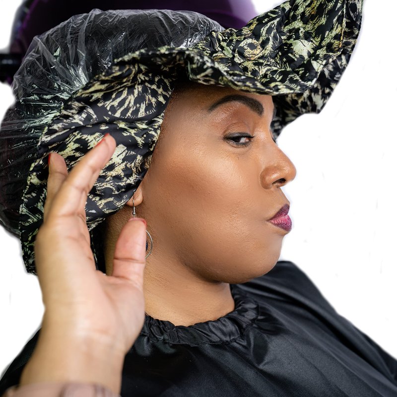 The UB Shield brings Comfort, Protection, and Peace of Mind to Your Salon Experience AND Your Hair Processing at Home Too! The UB Shield protects the Face, Ears, and Neck from heat, burns, and scorches of hairdryers, blow dryers, and hot irons! THE UB SHIELD’S MAIN FUNCTIONS: Hairdryer heat shield Blow dryer heat shield OTHER UBSHIELD USES: Curling iron scorch shield Hairspray shield Hair holder for makeup applications/eye lash applications Face shield for long hair styles (i.e., extensions, braids, natural styles, etc.) THE UB SHIELD FEATURES: It is made of cloth. It is elasticized, has ear cuffs, adjustable (fits children and adults), soft, comfortable, reversible, washable, and folds up for storage and transporting. HOW TO USE THE UB SHIELD: The UB Shield fits on the head in seconds. Place it onto the user’s head below the hairline leaving all of the hair above the shield. It fans out completely around the head. Tuck ears into the ear cuffs and connect the Velcro to close in the front or rear.