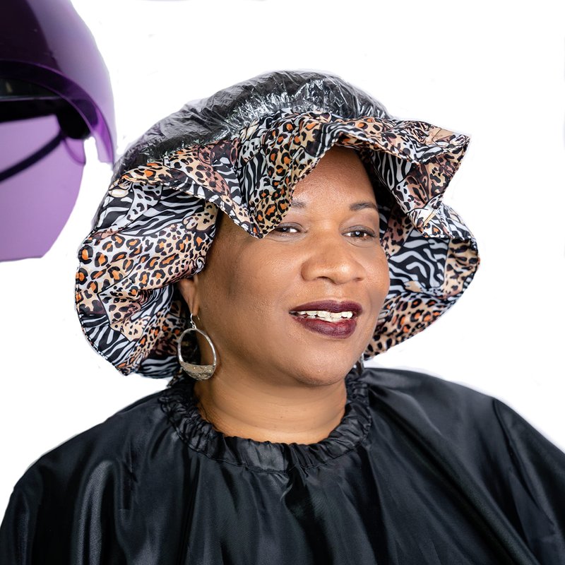 The UB Shield brings Comfort, Protection, and Peace of Mind to Your Salon Experience AND Your Hair Processing at Home Too! The UB Shield protects the Face, Ears, and Neck from heat, burns, and scorches of hairdryers, blow dryers, and hot irons! THE UB SHIELD’S MAIN FUNCTIONS: Hairdryer heat shield Blow dryer heat shield OTHER UBSHIELD USES: Curling iron scorch shield Hairspray shield Hair holder for makeup applications/eye lash applications Face shield for long hair styles (i.e., extensions, braids, natural styles, etc.) THE UB SHIELD FEATURES: It is made of cloth. It is elasticized, has ear cuffs, adjustable (fits children and adults), soft, comfortable, reversible, washable, and folds up for storage and transporting. HOW TO USE THE UB SHIELD: The UB Shield fits on the head in seconds. Place it onto the user’s head below the hairline leaving all of the hair above the shield. It fans out completely around the head. Tuck ears into the ear cuffs and connect the Velcro to close in the front or rear.