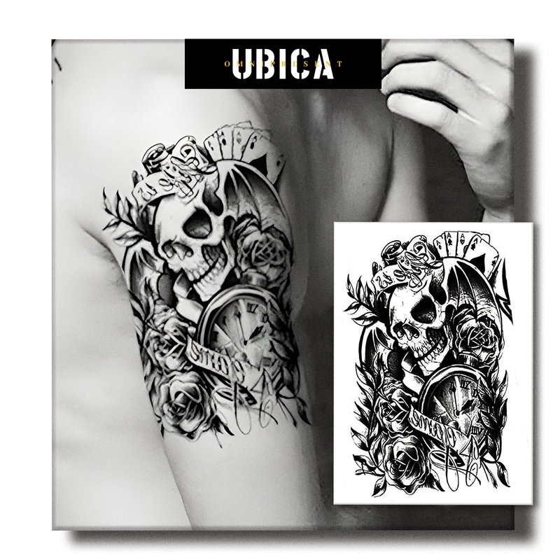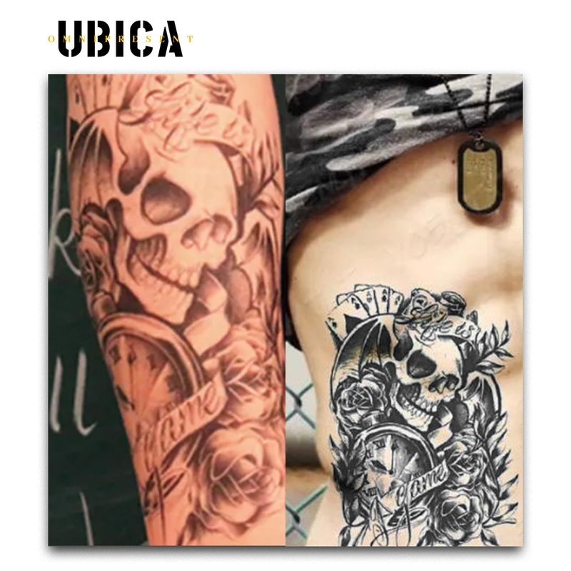 UBICA Temporary Tattoos Adult, 2 Sheets Fake Tattoos, Realistic And Long-Lasting Non-Reflective, Waterproof For 1-2 Weeks, skull Tattoos 4.7x6.8in