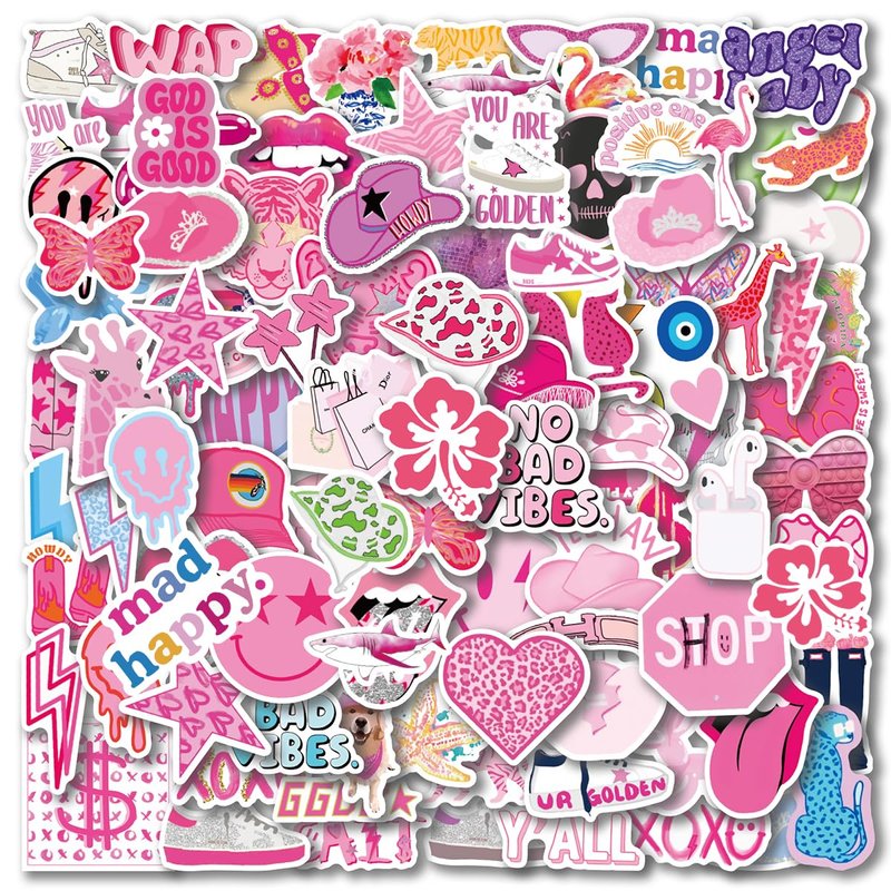 UBOFUGS 110PCS Preppy Vinyl Sticker Party Supplies Vinyl Waterproof Sticker Aesthetic Stickers Decor Pink Party Mobile Phone Stickers for Laptop Water Bottle