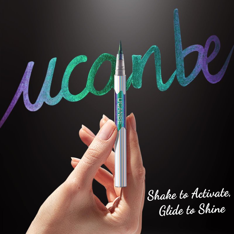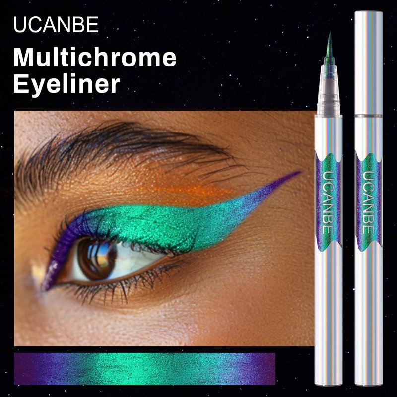 UCANBE Chameleon Liquid Eyeliner - Green Cyan Blue, Multi-Chrome Metallic Shift Eyeliner, Waterproof Glitter Eyeliner with Soft Fine Tip for Multi-Dimensional Eye Looks