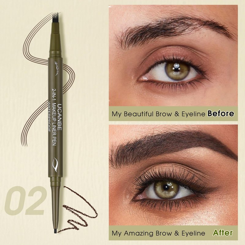 - 【Dual-Ended Eyebrow Pen & Gel Liner Pencil】UCANBE Innovative 2-in-1 eyebrow pen features eyebrow pencils for women with 4 micro-fork tips on one end to effortlessly fill colors in brow gaps and draw natural hair-like strokes, and on the other end, a gel eyeliner pencil with creamy formula glides on easily to create subtle lines, precise definition, intensely smokey vibes and custom brow & eyeline makeup looks.