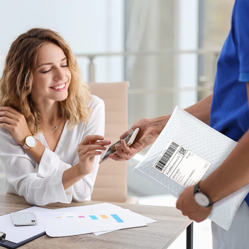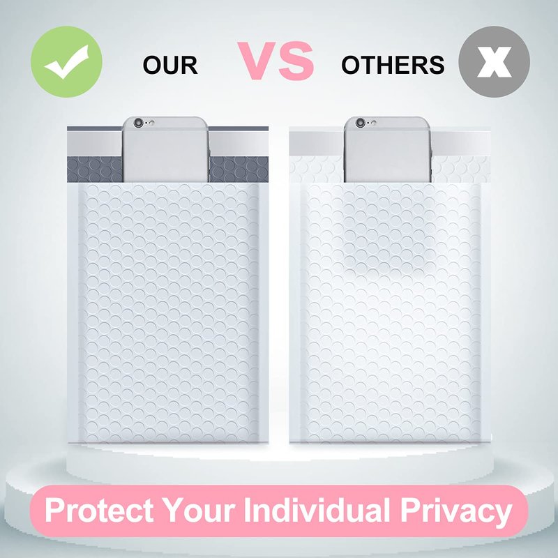 - šćOpaque Poly Bubble Mailersć The white bubble mailers outer size is 8.5x12 inch, while the inner size is 8.5x11 inch. With full air bubbles, our bubble mailers can protect your value products from damage caused by external impacts. The inner lining is using gray film, even if there is strong light, the items in the bag cannot be seen, which can protect your privacy well.