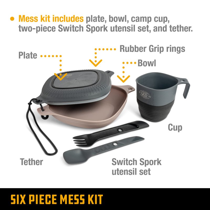 UCO 6-Piece Camping Mess Kit with Bowl, Plate, Collapsible Cup, and Switch Camping Spork