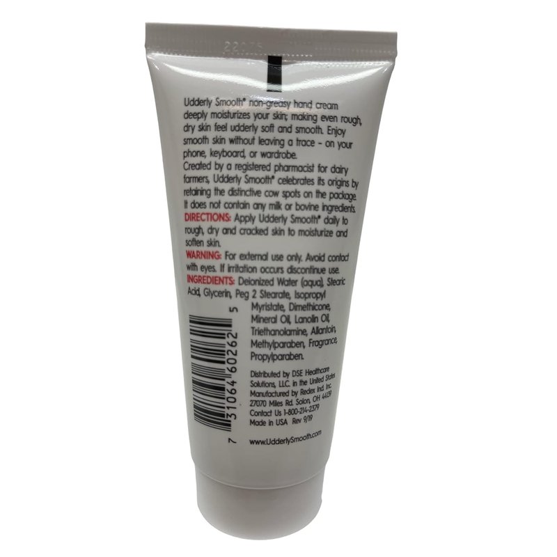 This bundle includes: (2) 2 oz Tubes & Phyphy'sTip Card. UDDERLY will Smooth and soften your dry skin! Each tube of this creamy formula hydrates and softens dry or irritated skin offering daily moisture at any time of the year without leaving behind a nasty residue. Ideal for home use, adding to care packages, care facilities, and resale in beauty supply stores. Made in the USA.