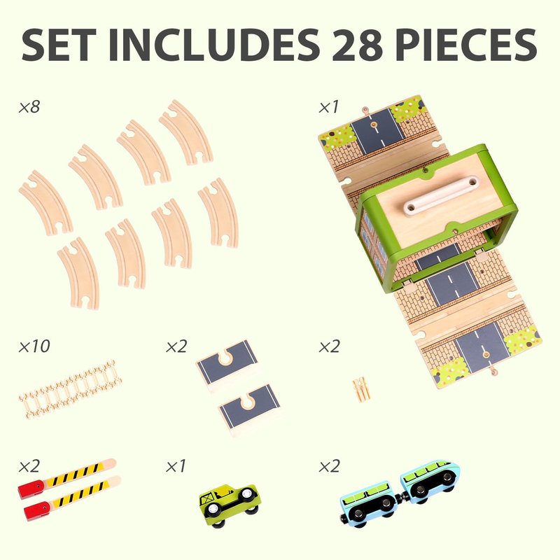 - [ROLE PLAY] : Train themed role-play will encourage the children to complete their virtual task. The design of the train station, the cross road designs allow children to role-play the driver or passengers, and let children learn about the train themed elements. Through role-playing scenario-based play, children could recognize the real scenarios and develop their cognitive ability through fun play.