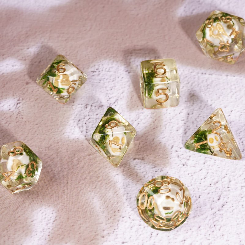 UDIXI 7-Die DND Dice Set, Polyhedral Dice Set for Dungeons and Dragons, D&D Skull Dice for RPG MTG Table Games, D and D Dice Set (Skull-Seaweed)