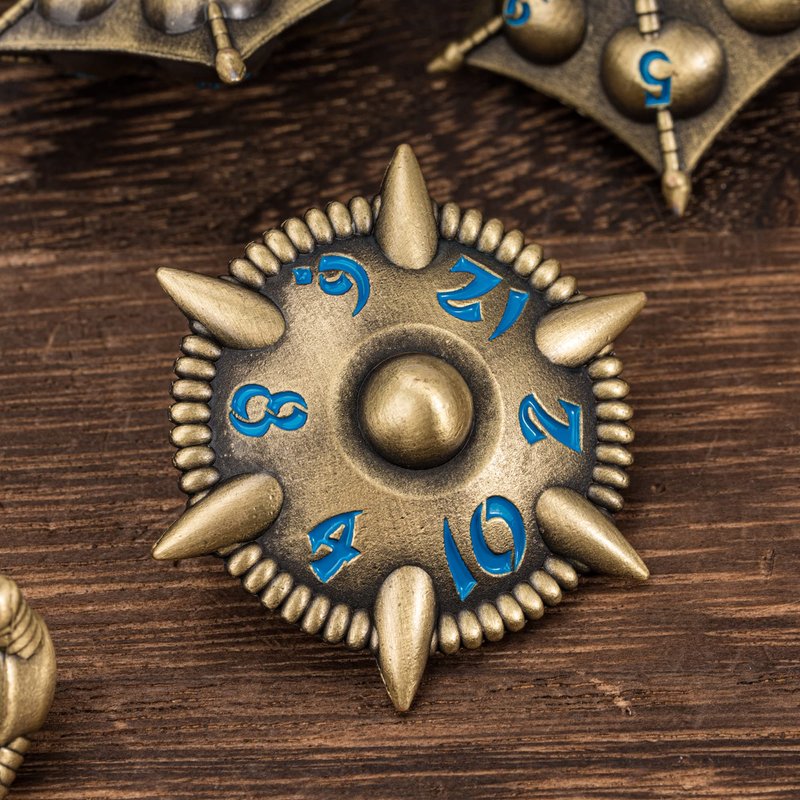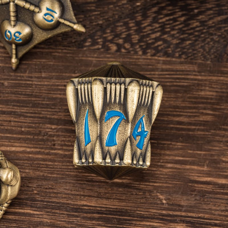 UDIXI Dragon Metal Dice Set D&D, 7-die Polyhedral Dice Set with Unique Shape for DND Dungeons and Dragons Role Playing Games(Bronze with Blue Number)
