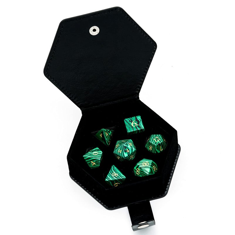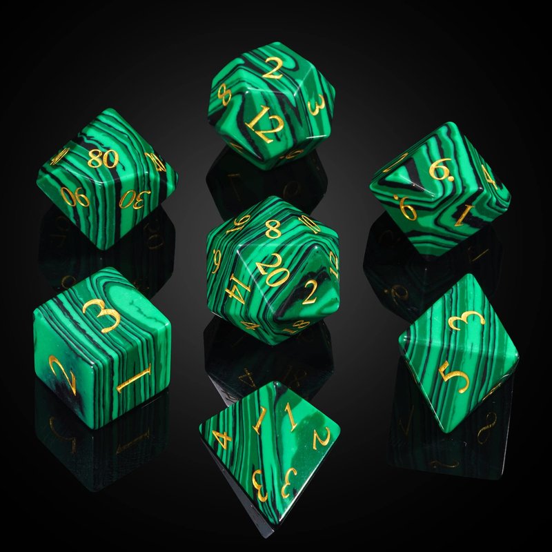 UDIXI Malachite Stone Dice Set D&D 7PCS Gemstone Dice Polyhedral DND Dice with Gift Case for Dungeons and Dragons Role Playing Games MTG Tabletop Games