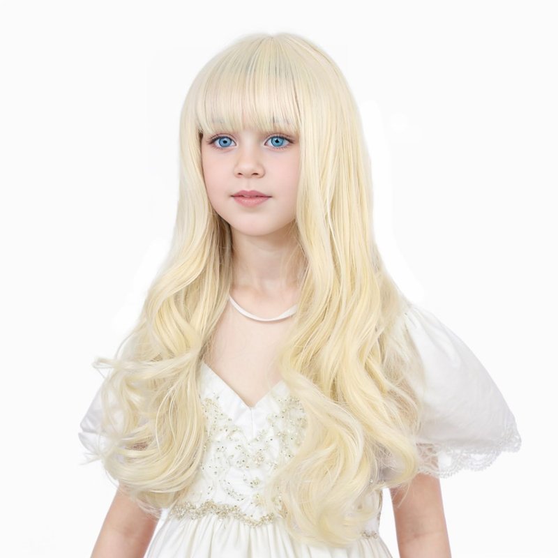 Ufindcos Light Blonde Wig for Kids Long Wavy Curly Blonde Hair Wig for Child Blonde Wig with Bangs for Girls Natural Synthetic Wig with Wig Cap