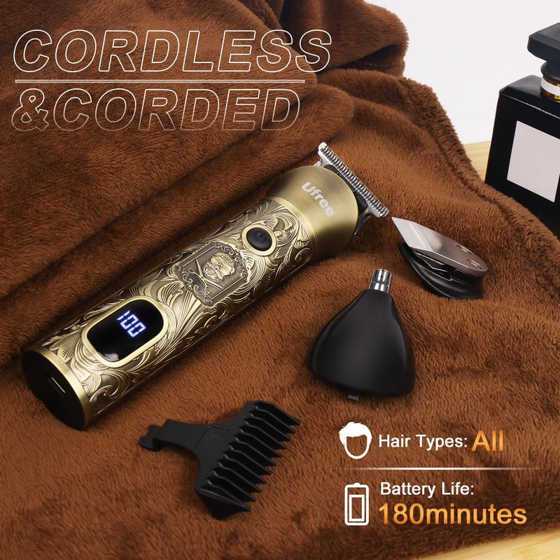 Ufree Beard Trimmer with Professional Hair Clippers for Men, Electric Razor Shavers for Men, Cordless Mens Grooming Kit for Nose, Face and Head, Barber Clippers and Trimmers Set, Gifts for Men