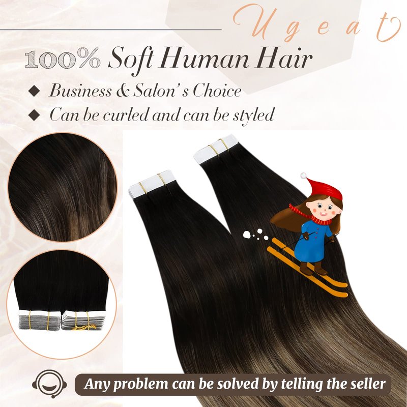- 【Hair Extensions Material】Ugeat Tape in Hair Extensions are made of real human hair, ensuring the quality and durability. They are soft, silky, and can be styled just like your own natural hair. They are also lightweight and comfortable to wear.