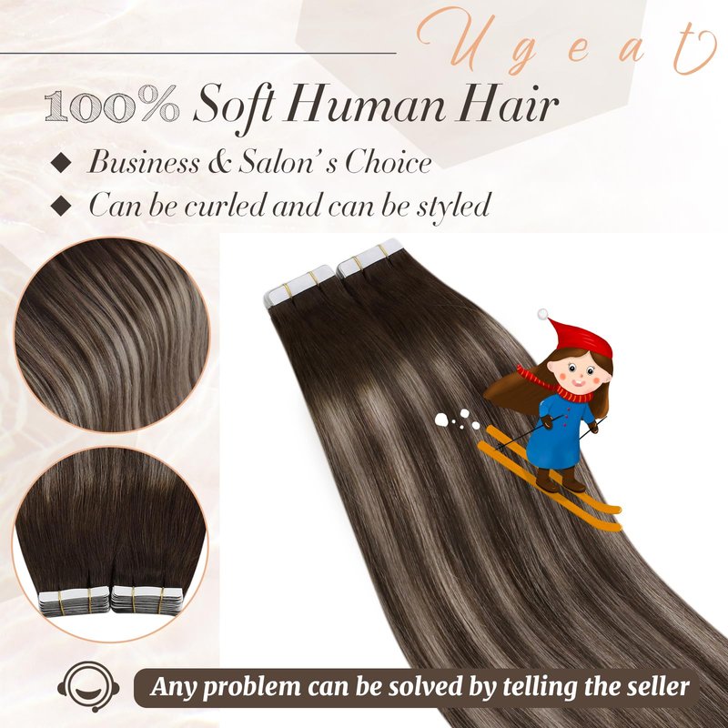 - 【Hair Extensions Material】Ugeat Tape in Hair Extensions are made of real human hair, ensuring the quality and durability. They are soft, silky, and can be styled just like your own natural hair. They are also lightweight and comfortable to wear.